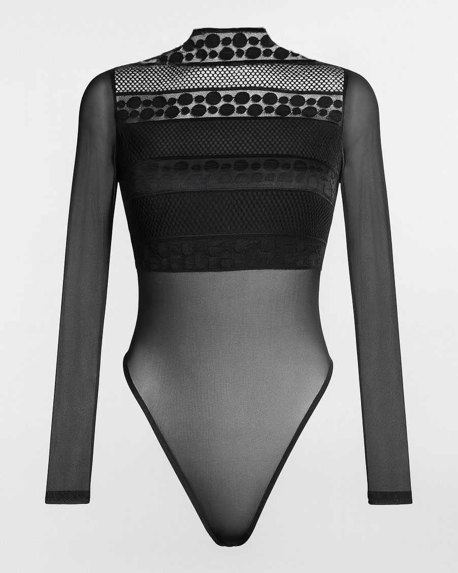 • Manga larga con mesh transparente, que aporta un look moderno y sexy.