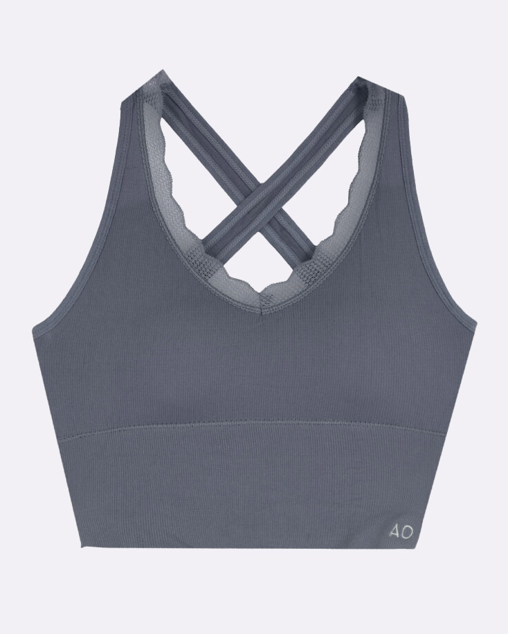 Corte olímpico con espalda cruzada, que brinda libertad de movimiento y un ajuste firme.
